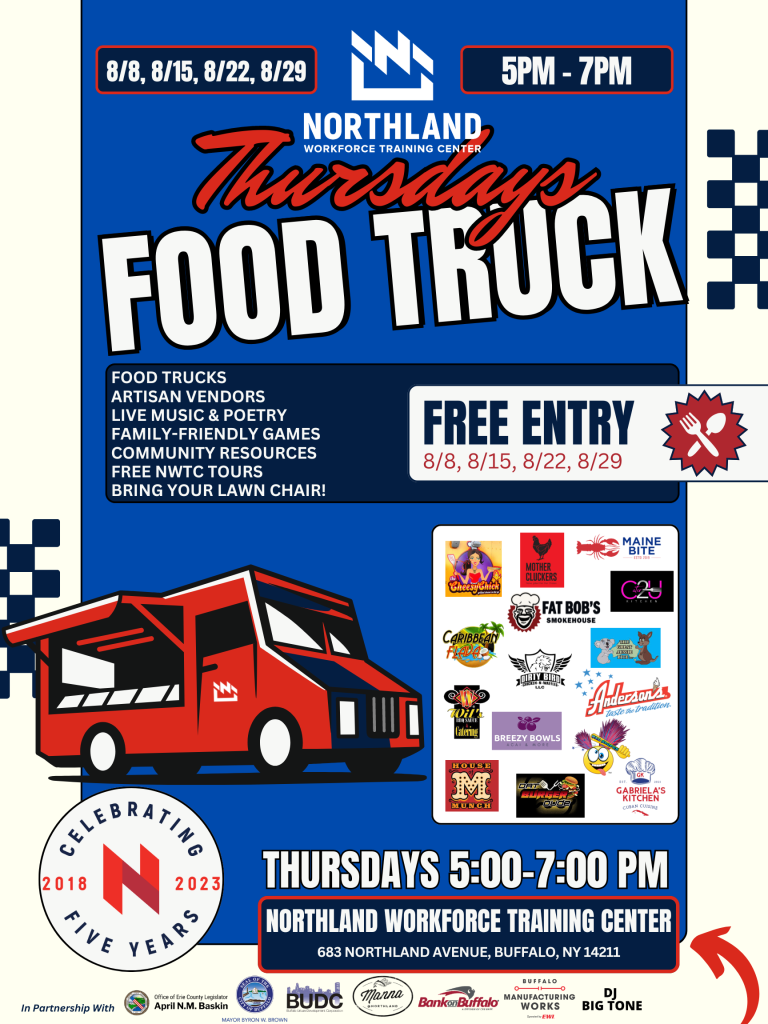 Beginning August 8, NWTC is the place to be on Thursday nights! Northland Workforce Training Center is proud to host Food Truck Thursdays, happening right here at 683 Northland Avenue!