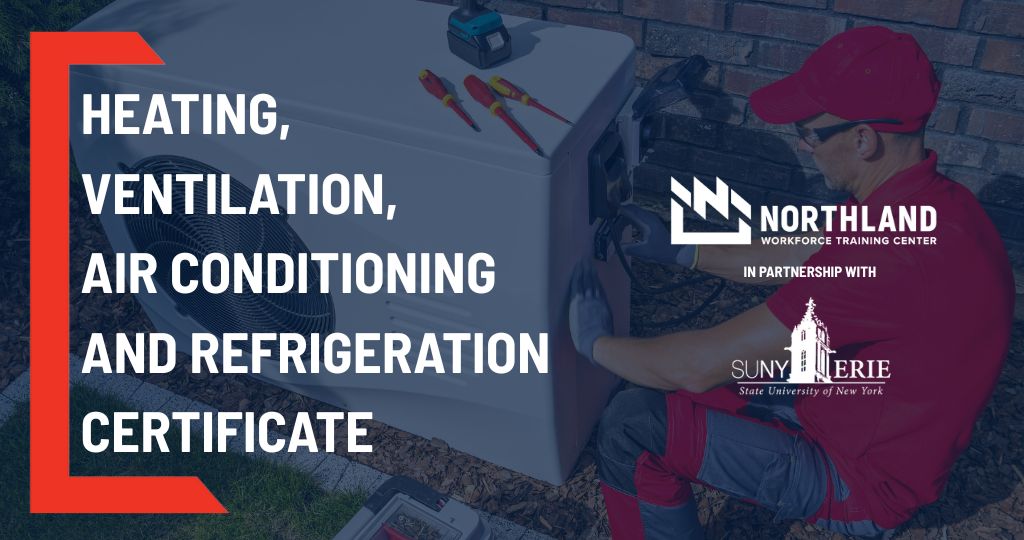 Northland Workforce Training Center, in partnership with SUNY Erie Community College, is happy to announce the launch of the first cohort for our new Heating, Ventilation, Air Conditioning, and Refrigeration program for the fall 2025 semester! This program prepares individuals to apply technical knowledge and skills to install, service, repair, and maintain the equipment used in heating, air conditioning, and refrigeration systems.